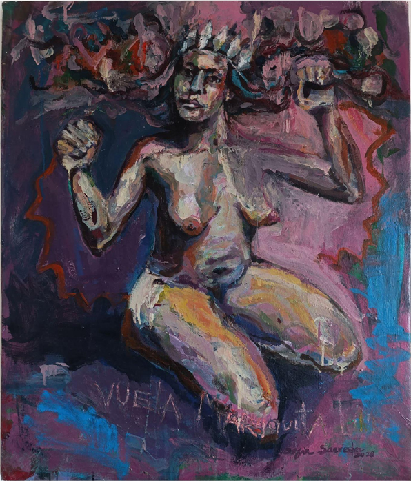 Venezuelan artist Sofía Saavedra, recent recipient of the Honorable Mention Award at the Baja California International Triennial, Tijuana 2021, presents in Puebla «Bird Woman, Transmutation of a Flight: Dreams and Freedoms as Spaces of Resistance». This pictorial exhibition features over 20 works in various formats, creating a narrative interplay that frames freedoms as flight, assigning political significance to the construction of human liberties from creative spaces. Through painting, she proposes the importance of stimulating and listening to the oneiric, erotic, playful, and creative realms as starting points for building emancipatory spaces for women.